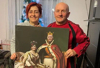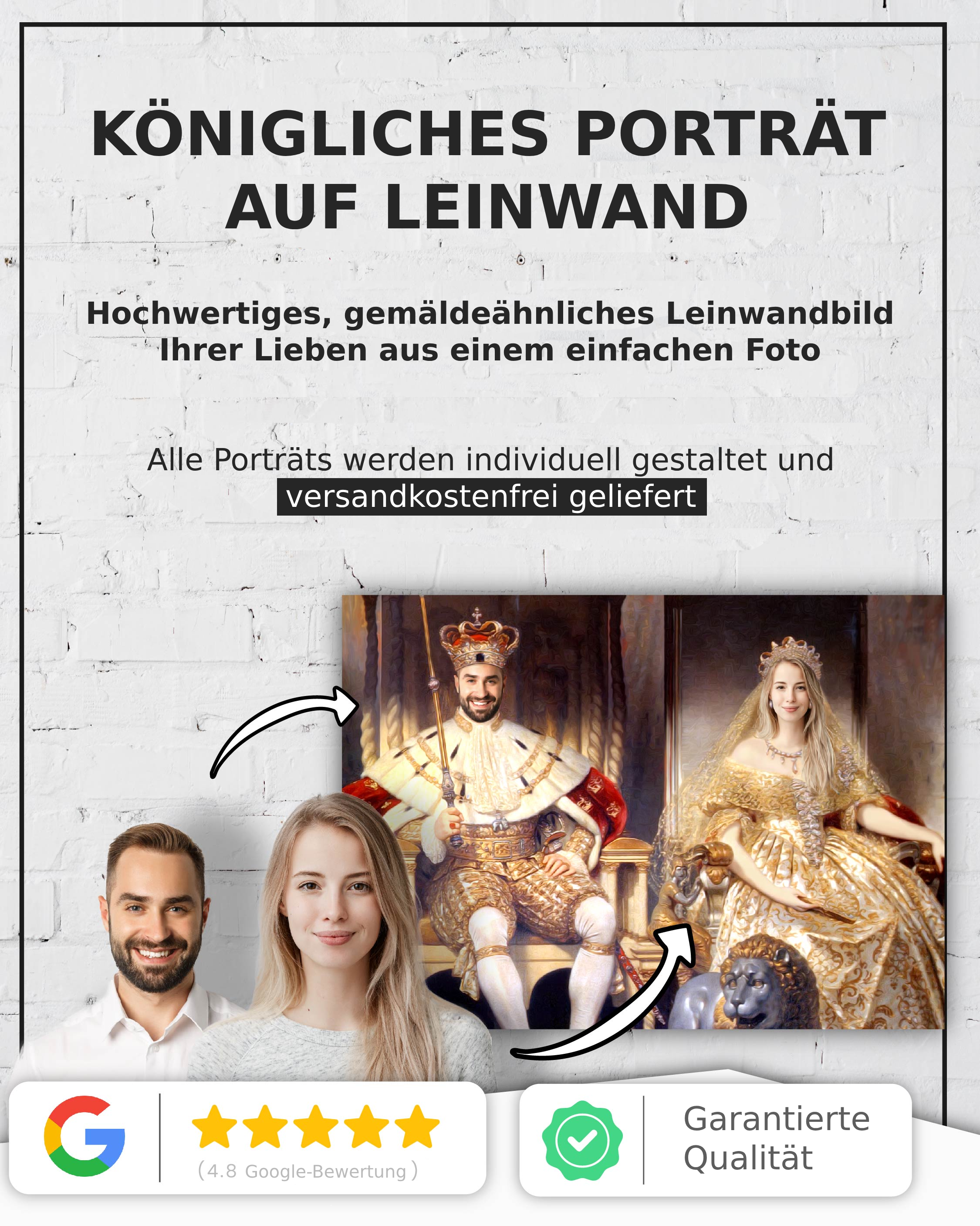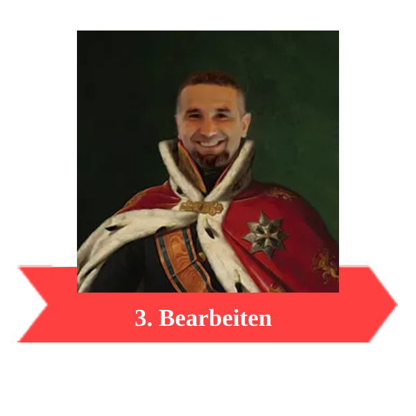 Wir machen aus deinem hochgeladenen Foto einem originalen royalische Gemälde.